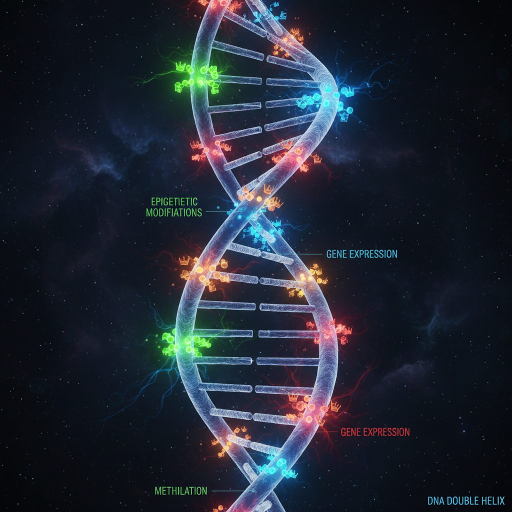 Explore how lifestyle, environment, and ancestral experience modify gene expression without changing DNA sequence — and how epigenetic clocks measure biological age.