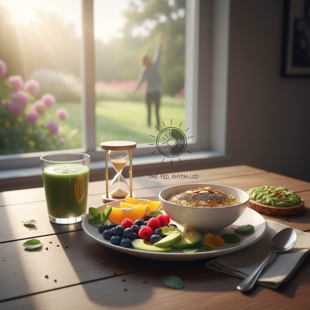Circadian timing governs cortisol (peaks at dawn), melatonin (peaks at 2–3am), insulin sensitivity (highest in the morning), immune activity (NK cell activity peaks at night), DNA repair (primarily nocturnal), and body temperature (nadir at 4am). Time-restricted eating (TRE) aligned with circadian rhythms — eating within an 8–10 hour window earlier in the day — improves metabolic health, reduces inflammation, and extends healthspan in multiple model organisms.